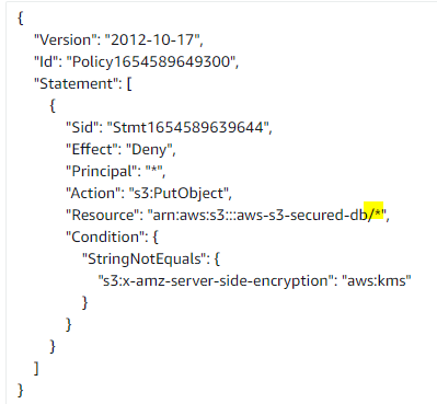 암호화된 컨텐츠를 제외하고는 업로드가 거부되도록 하게끔 정책을 설정했다.
