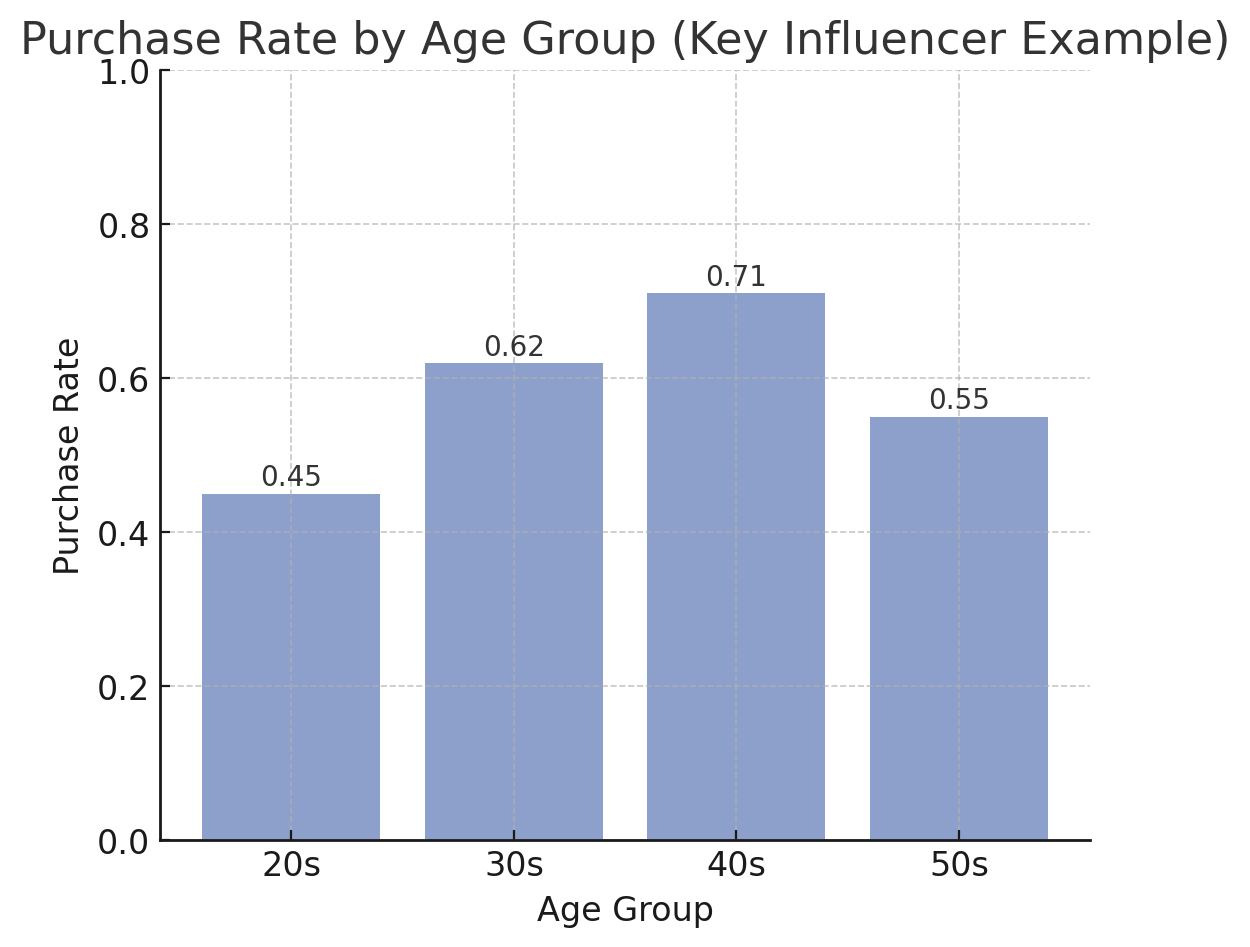 • 주요 인플루언서 = "30대 여성", "할인율이 20% 이상", "주말 접속"