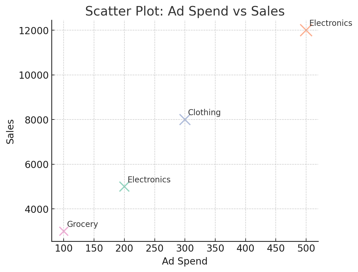 • → 광고비가 늘어날수록 매출이 어떻게 변화하는지 관계를 한눈에 확인 가능