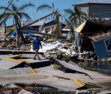 답변: 이미지의 현재 장면을 바탕으로, 허리케인이나 심각한 기상 현상이 해당 지역의 건물과 인프라에 큰 피해를 입혔을 가능성이 있습니다. 잔해로 뒤덮인 지역을 걷고 있는 사람은 재난으로 인한 피해를 점검하고 있는 것으로 보입니다. 야자수의 존재는 이 지역이 허리케인이나 기타 자연재해에 취약한 열대 또는 아열대 지역일 가능성을 시사합니다.