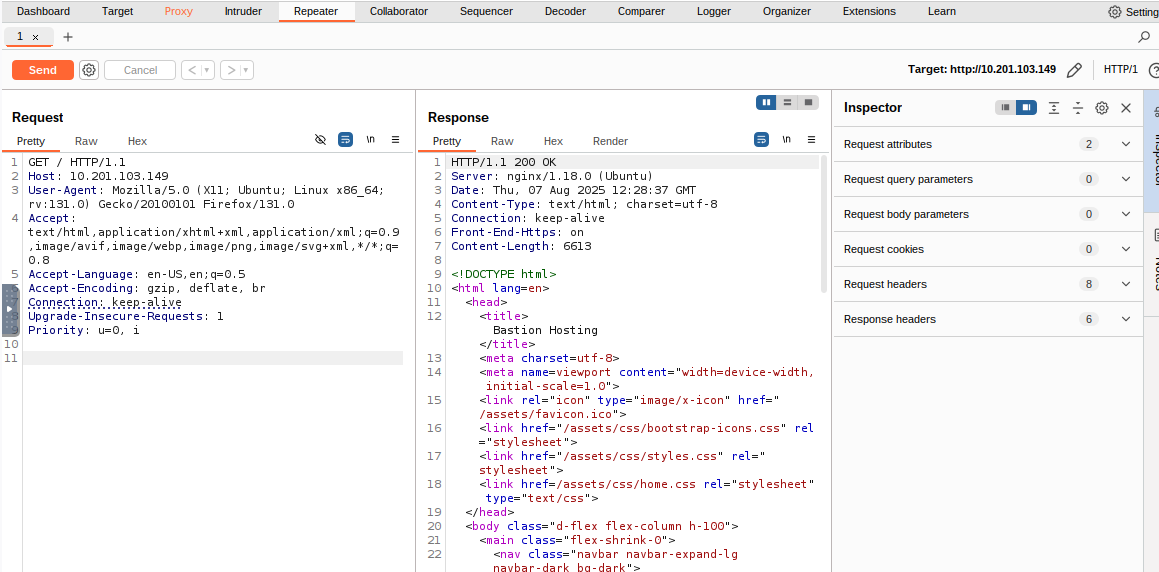 Target : 캡처한 요청이 전송될 IP 주소 혹은 도메인을 지정할 수 있다. Proxy에서 캡처한 요청을 Repeater로 보내면 자동으로 채워진다.