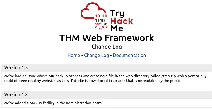 로그를 보면 1.3버전에서 1.2의 백업 파일 이슈를 해결했다고 하는데 /tmp.zip 디렉토리에 생성됐다는 이슈라고 한다.