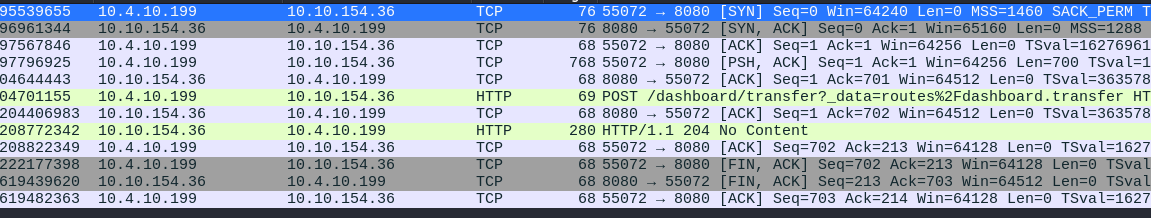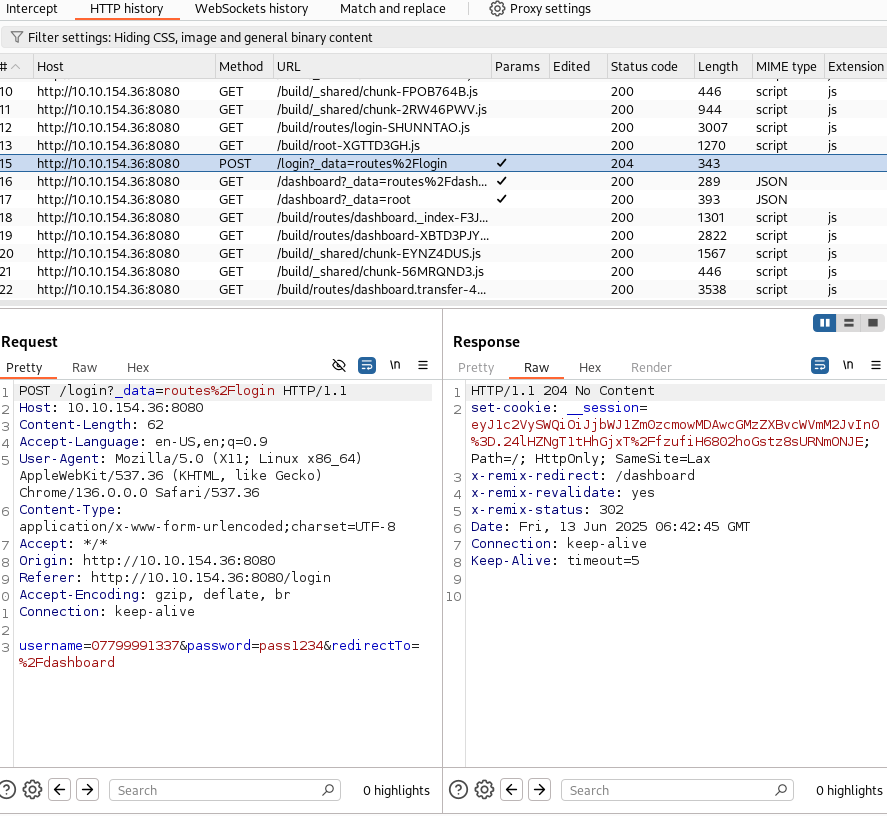 POST 리퀘스트를 잡아서 확인해보면 입력한 정보와 리다이렉션 주소, 성공 상태가 모두 정상적이다