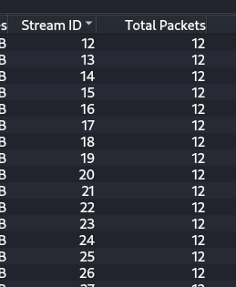 각 리퀘스트는 비슷한 시간에 마무리됐고 각 패킷의 크기도 12로 같았다.