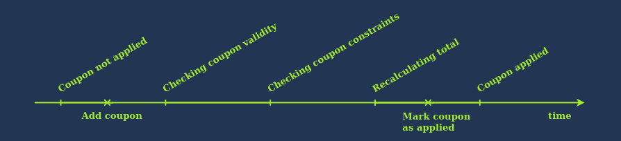 물론 위 타임라인에서는 쿠폰이 있고, 쿠폰을 적용할 수 있는 제품이라는 가정에서 쿠폰이 적용될 때까지의 시간 흐름에 따라서 순서가 존재한다.