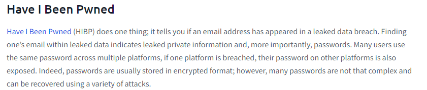 Have I Been Pwned는 간단히 말해 이메일의 비밀번호와 같은 개인 정보가 탈취되었는지 검색할 수 있다.