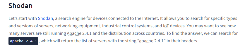 shodan 은 인터넷에 연결된 기기를 보여주는데, 서버, 네트워크 장비 등을 포함한다.