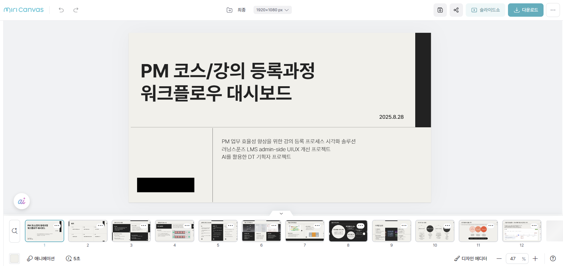 - PM 코스 및 강의 등록 과정의 진행 상황을 한눈에 확인할 수 있는 통합 대시보드 필요