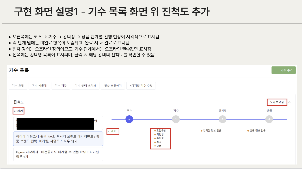 - 업무 프로세스 표준화: 코스·기수·강의장·상품 등록 절차가 일관되게 정리되어 누구나 동일한 기준으로 업무 수행 가능
