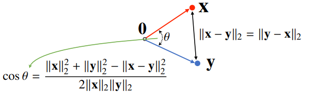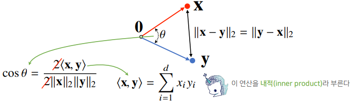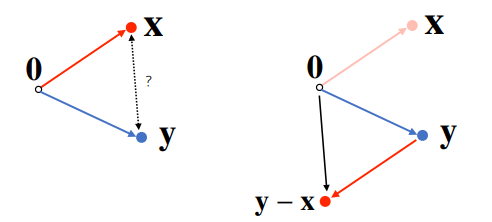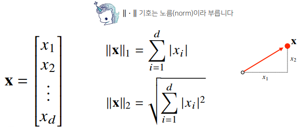 벡터의 노름(norm)은 원점에서부터의 거리를 말합니다.