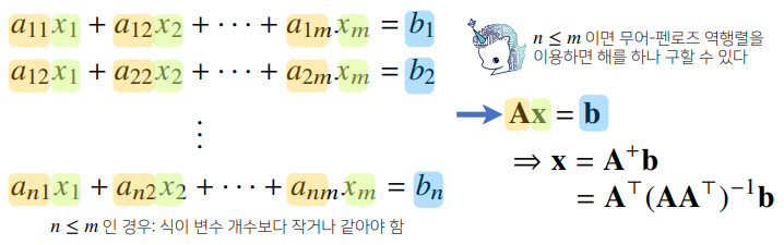 np.linalg.pinv를 이용하면 연립방정식의 해를 구할 수 있다.