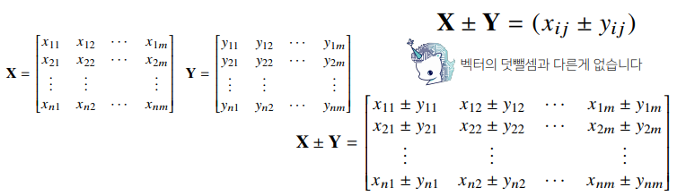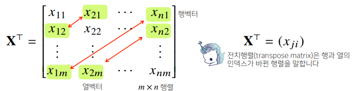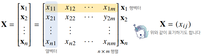 행렬(matrix)은 벡터를 원소로 가지는 2차원 배열입니다.