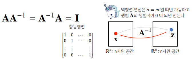 어떤 행렬 A의 연산을 거꾸로 되돌리는 행렬을 역행렬(inversematrix)이라 부른다.