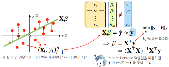 np.linalg.pinv를 이용하면 데이터를 선형모델(linearmodel)로 해석하는 선형회귀식을 찾을 수 있다.