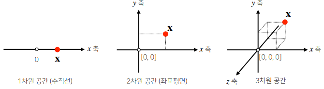 벡터는 숫자를 원소로 가지는 리스트(list) 또는 배열(array) 입니다.