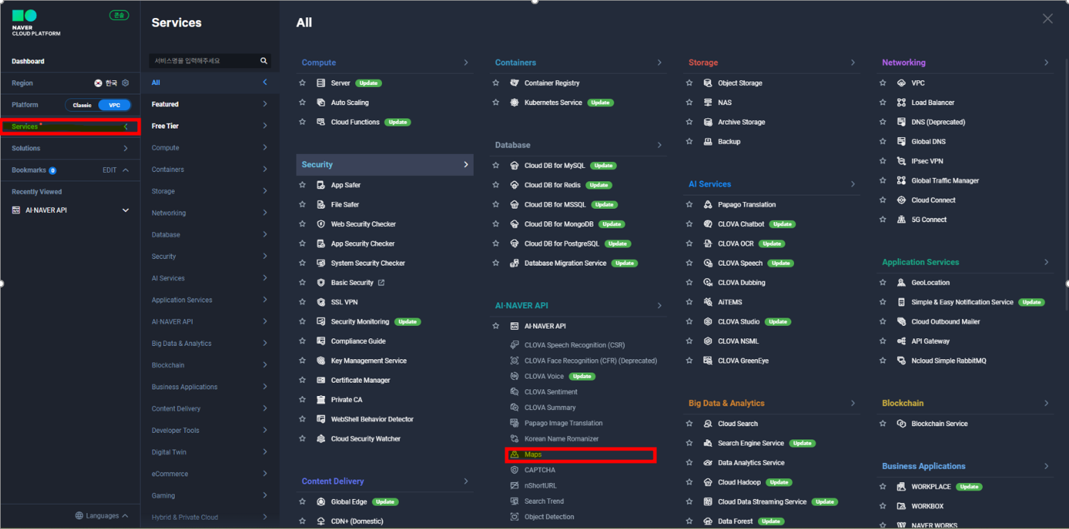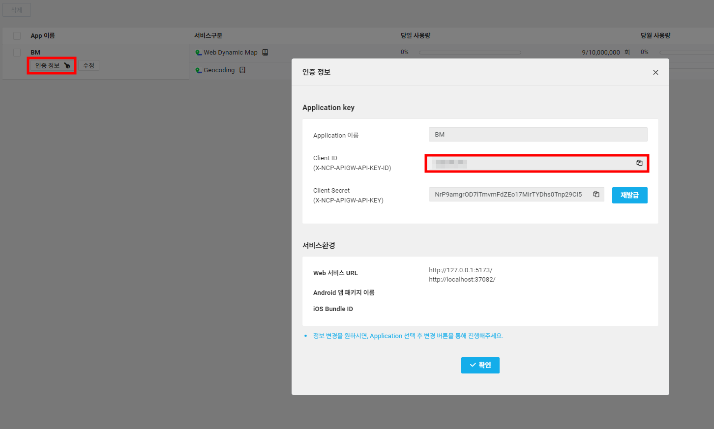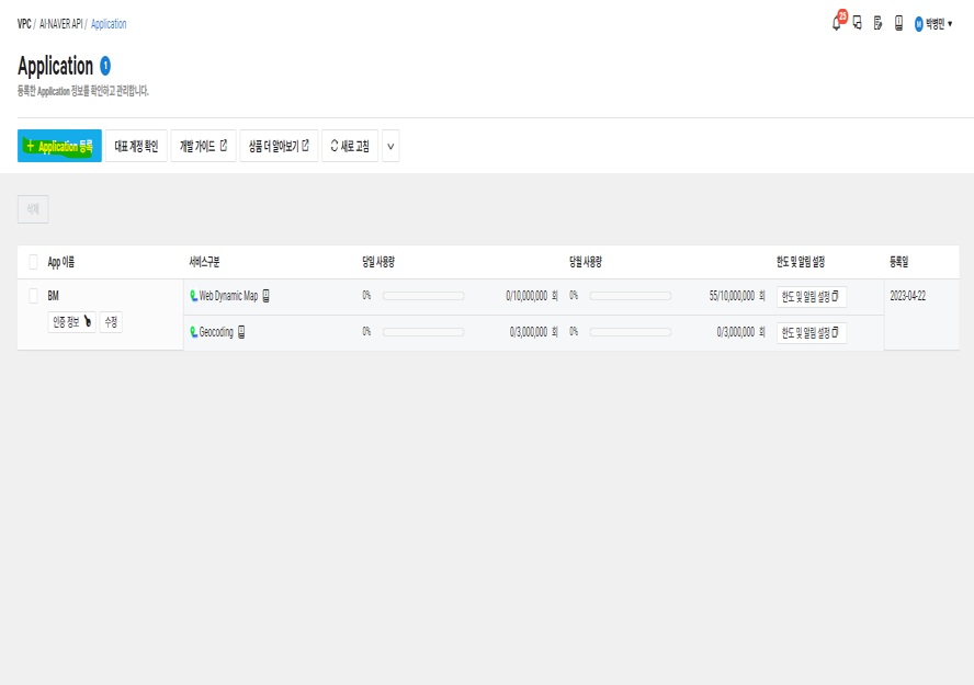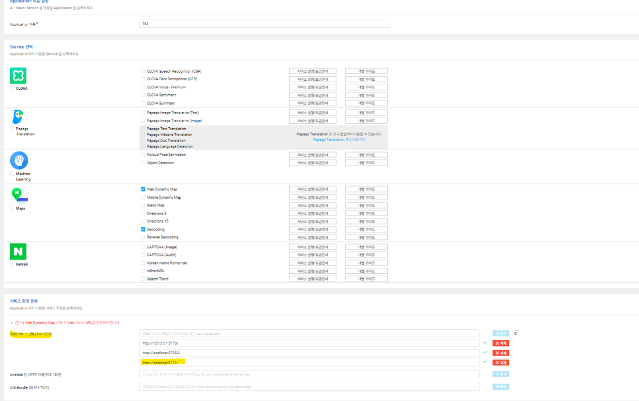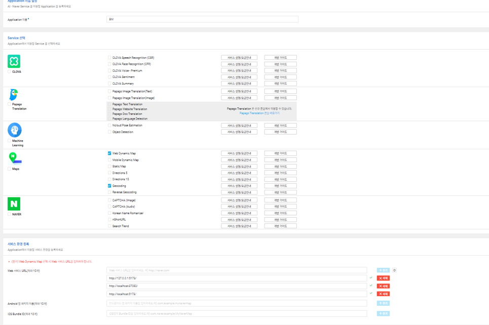 Application 이름, 사용할 기능, URL 설정을 한 후에 저장을 하면 API 키 발급 완료