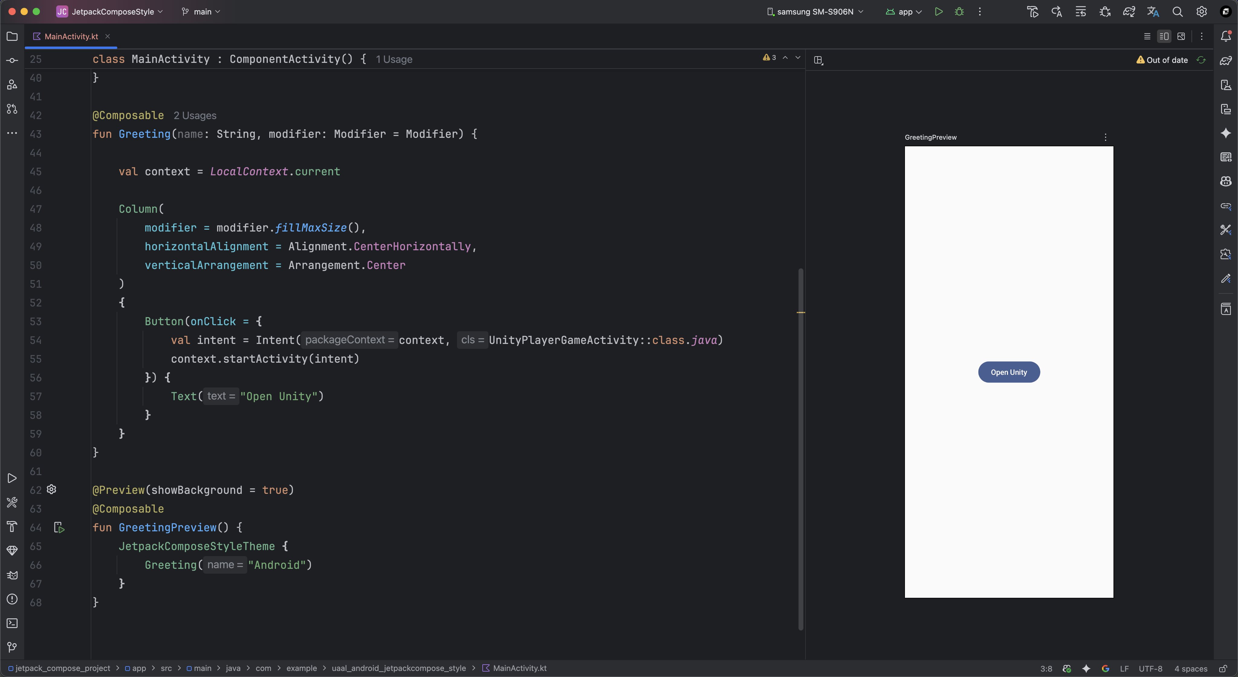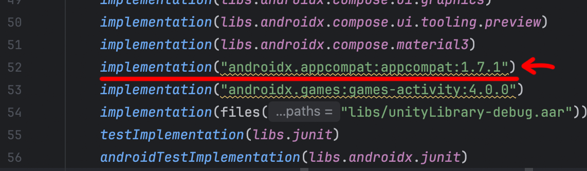 따라서 Jetpack Compose 프로젝트에서 Unity를 연동할 경우, AppCompatActivity를 추가로 임포트해야 합니다.