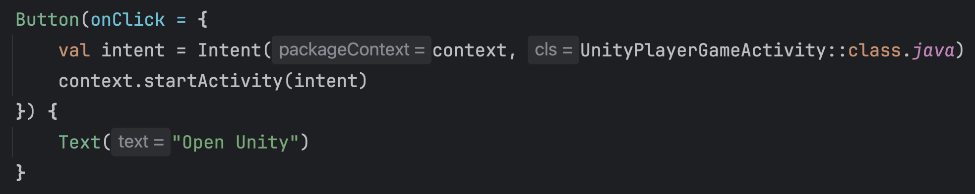 val intent = Intent(this, UnityPlayerActivity::class.java)