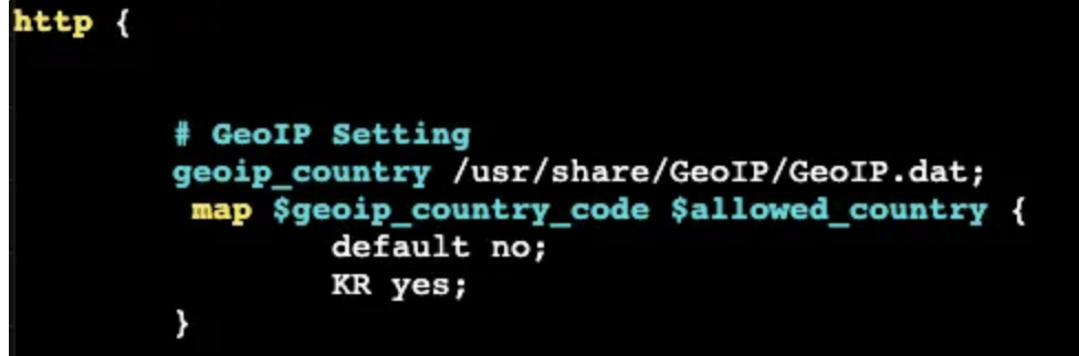 였고, 우리는 GeoIP 설정을 통해 국가 기반의 차단 정책을 도입했다.