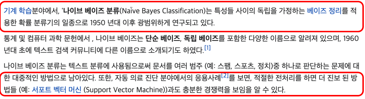 각단어별로 독립적으로 확률을 계산하기 때문에 나이브하다고 한다.