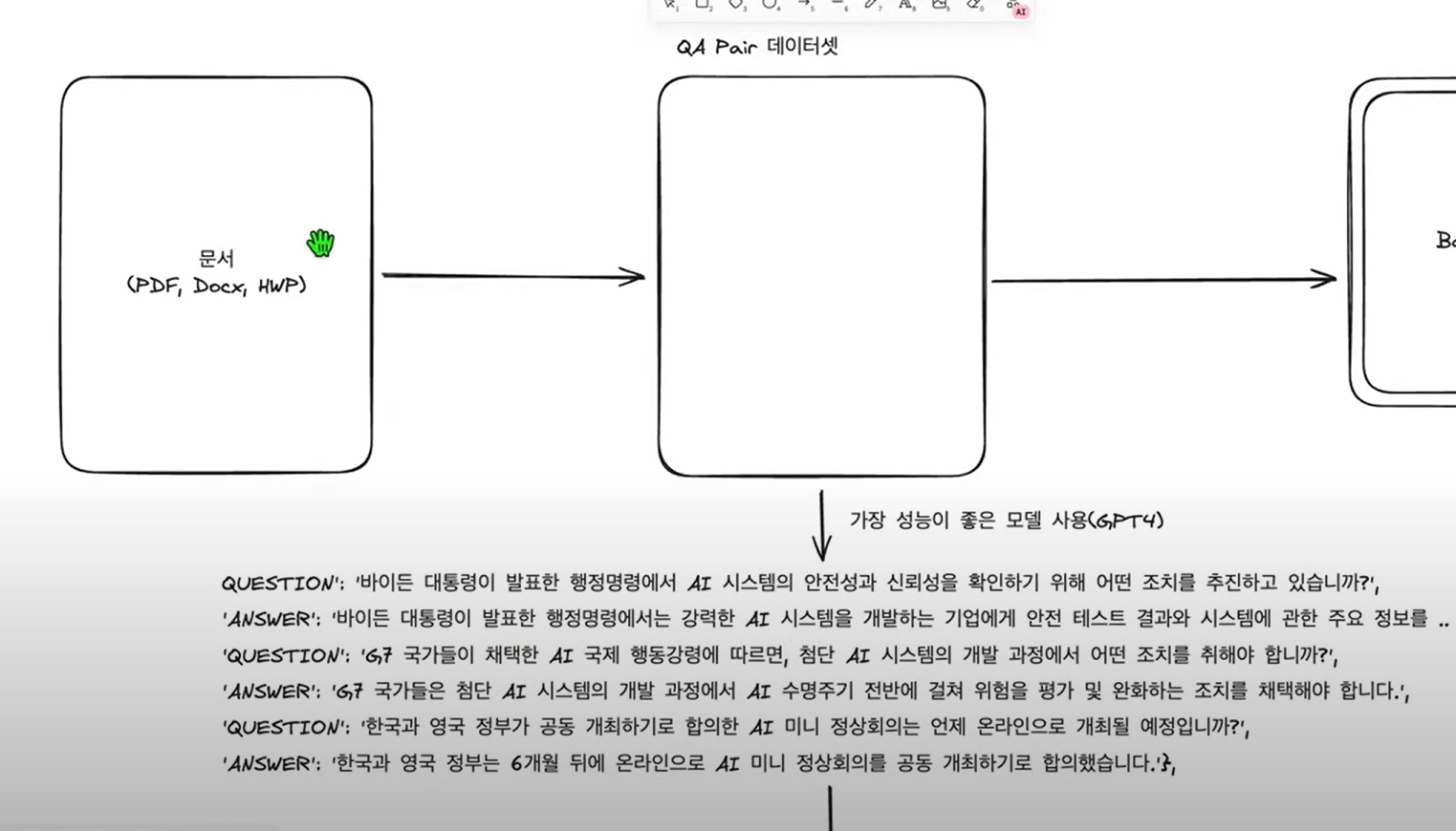 이것을 QA Pair 데이터셋을 만든다. 왜냐하면 GPT따위에서는 모두 묻고 답하는 것으로 이뤄져있기때문이다.