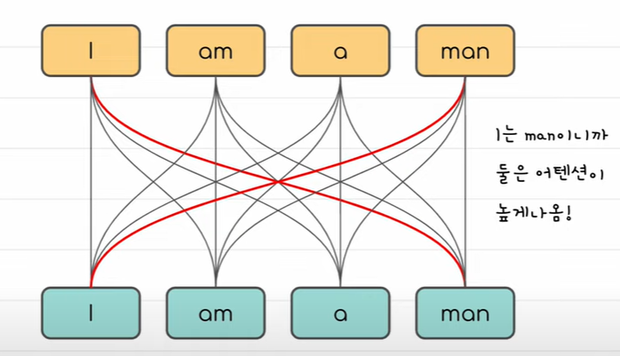 단어들과의 관계를 구했을때 관계가 깊은 것에 점수를 주는 줘서, 모델이 입력 데이터의 특정 부분에 집중할 수 있도록 하는 메커니즘