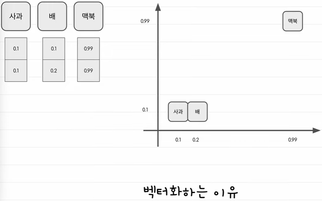 그냥 숫자보다 벡터로 만들면 단어의 의미를 녹여낼 수 있기 떄문이다.