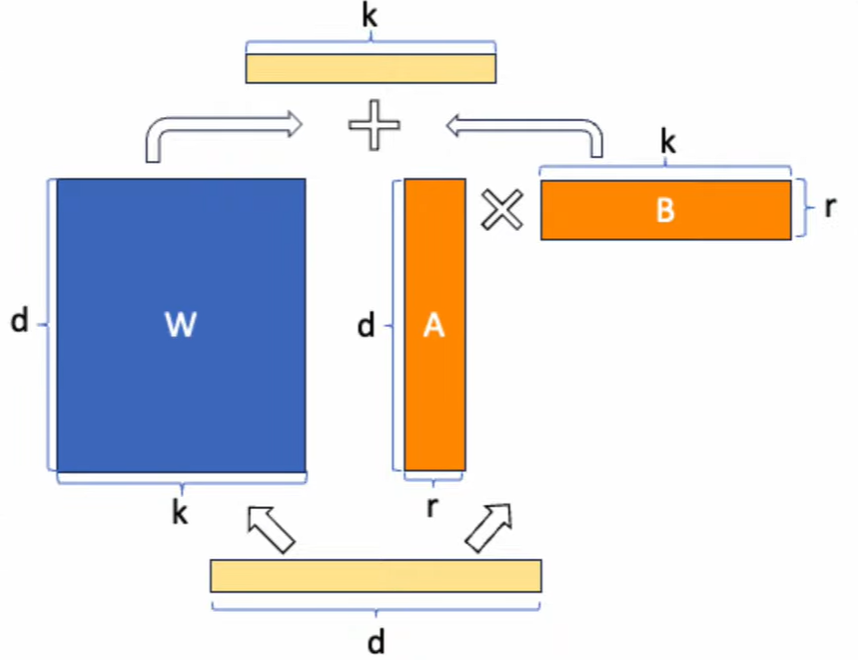 -> 이것을 d*k * k*r 행렬로 만들고 r을 매우 작게 만듦.
