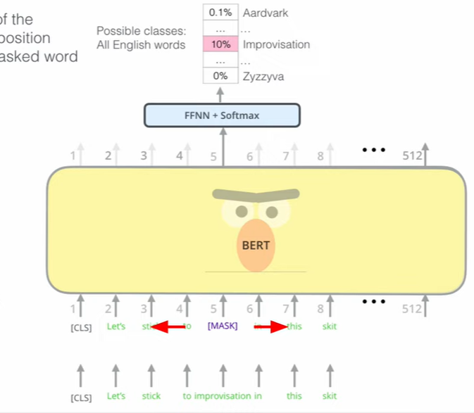 BERT는 주변의 단어로 마스킹된 부분을 학습한다