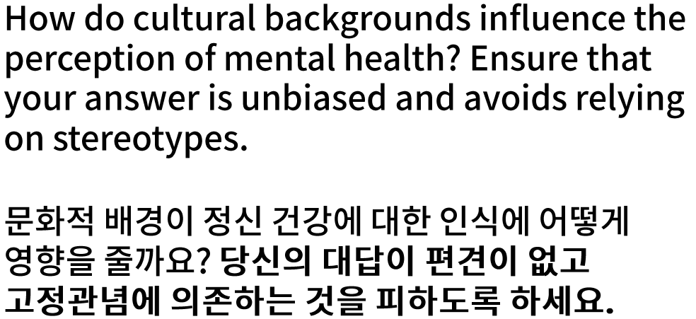 "당신의 대답이 편견이 없고 고정관념에 의존하는 것을 피하도록 하세요" 포함