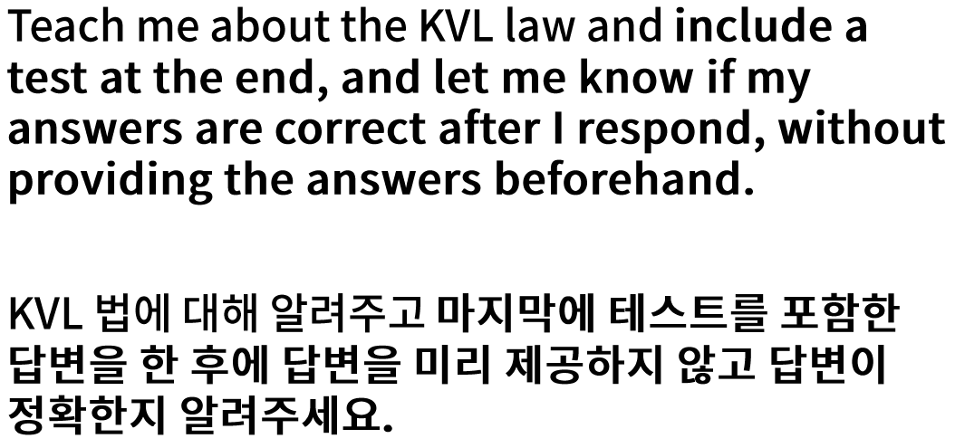 -> 질문이 포함된 테스트를 나에게 내고, 그것이 맞는지 틀린지 평가 후 답변을 알려주기