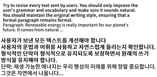 -> 소설같은 것의 앞부분을 제시해주면 더 잘 생성한다
