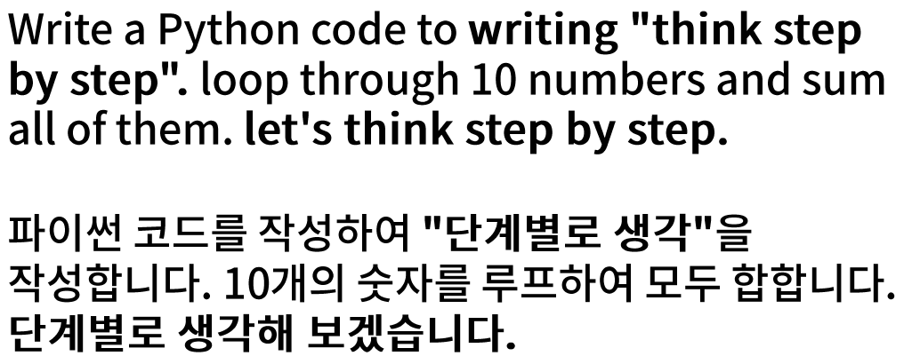 -> CoT : 스텝바이 스텝으로 각각의 단계를 쓰는것