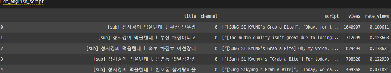 연예인 및 유명인 ('sikyung', 'dongyup', 'superstar') : 연예인이 출연하는 콘텐츠는 조회수와 상관관계가 있어보인다.