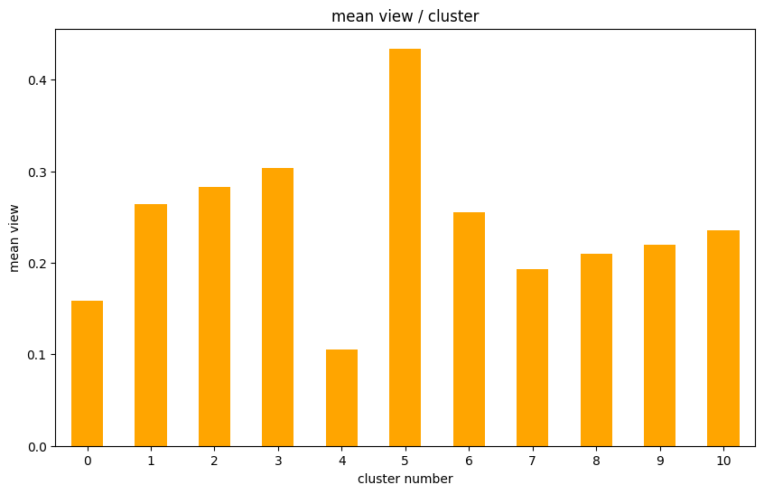 -> 군집에 속하는 영상들의 평균조회수를 측정