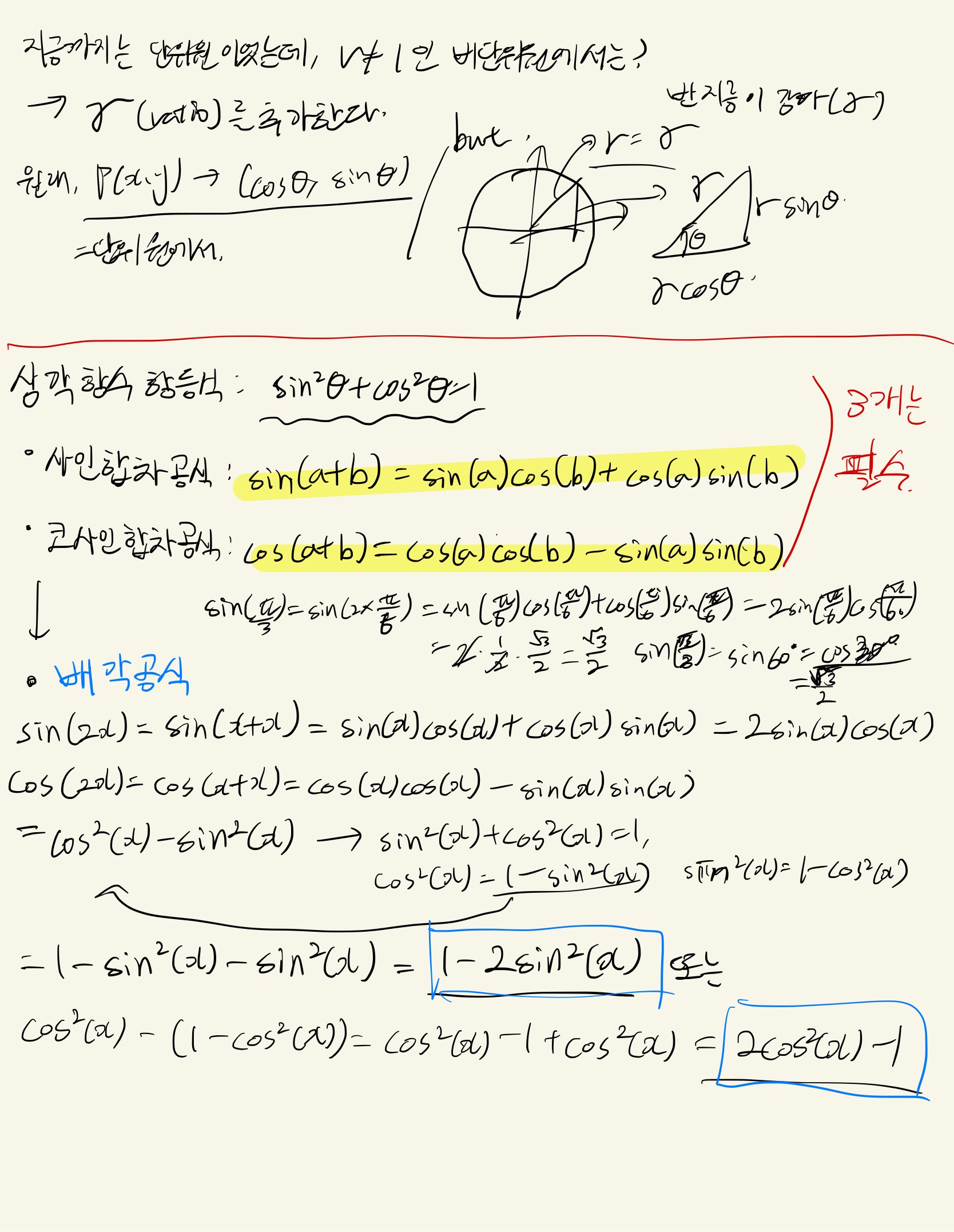 에서 시작한다고 생각한다. 이 수식에서 가장 중요한 삼각함수 항등식 이 나온다.