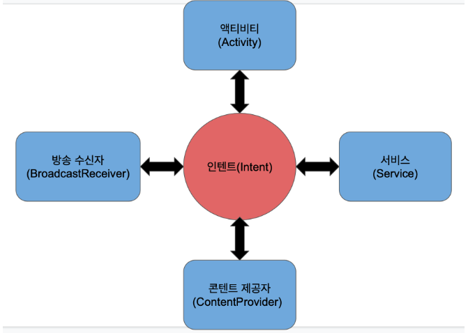 - 각 컴포넌트들은 인텐트를 통해 서로 상호 작용
