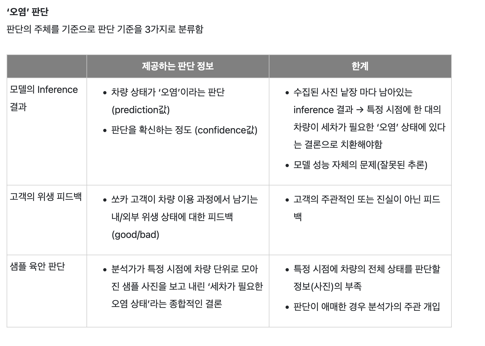 - 오염 판단기준 다각화 - AI모델 결과, 고객 피드백 감성분석(good/bad) , 전문가 육안 판단