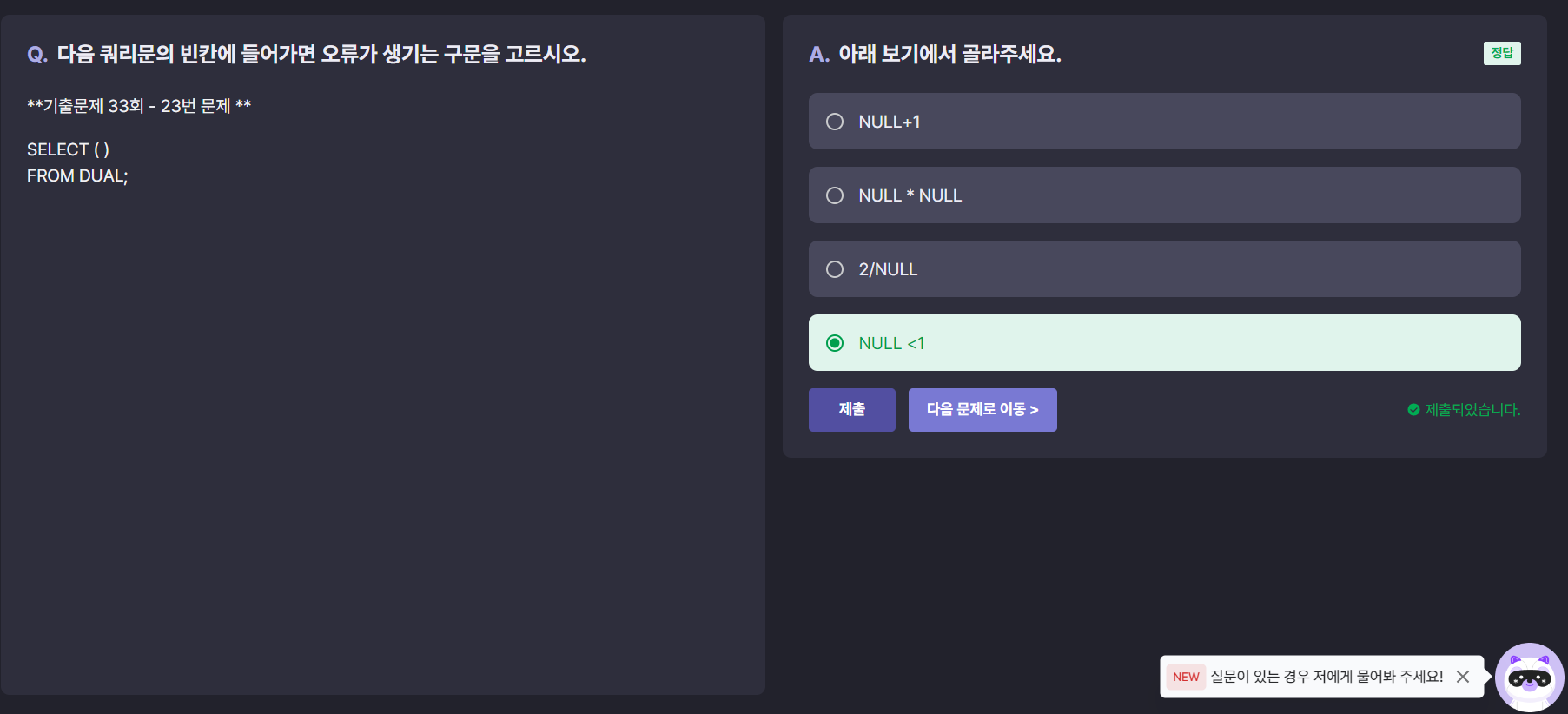 NULL값과 사칙연산은 무시되는 요소이다. NULL <1 은 비교연산자로 비교가 불가함 .