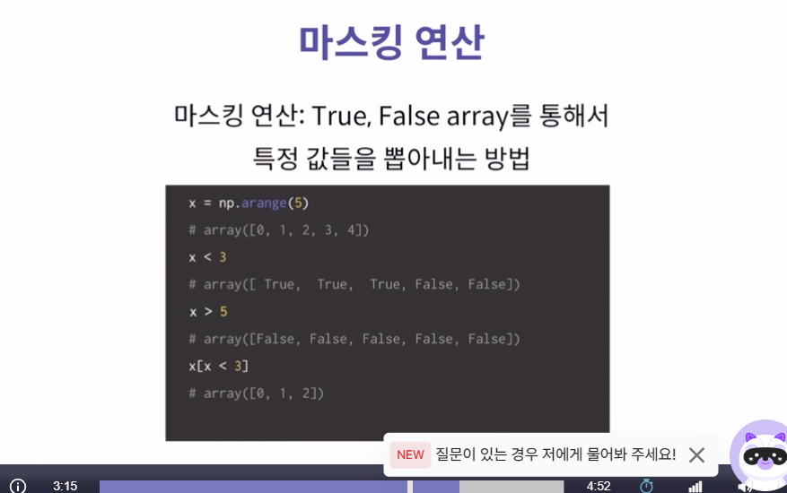 마스킹 연산: 특정값을 기준으로 boolean 형태로 반환