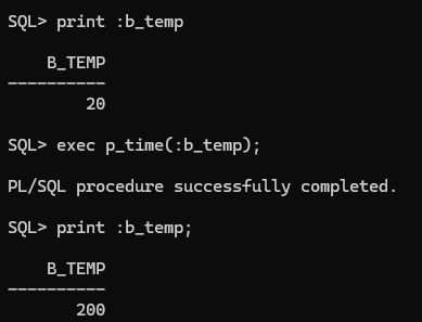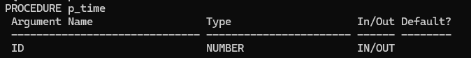 CREATE OR REPLACE PROCEDURE p_time(id in out number)