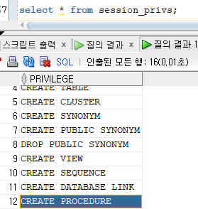 에서 CREATE PROCEDURE가 있어야지만 PROCEDURE, FUNCTION, PACKAGE를 생성할 수 있다.