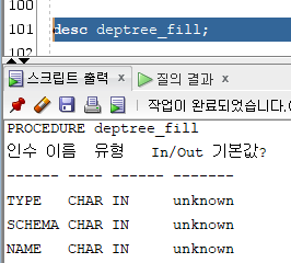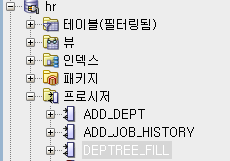 하면 프로시저에 DEPTREE_FILL이라는 프로시저가 생성된다.