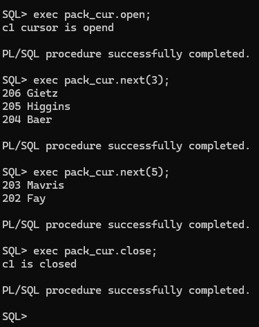 ### 패키지에서 선언한 커서를 open하게 되면 현재 session이 열려있는 동안 계속 open되어 있다. 현재 session을 닫거나 cursor를 close할 때 까지 open 상태를 유지한다.