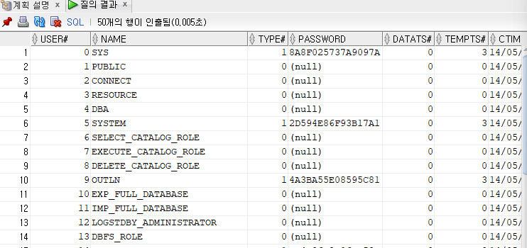 데이터 딕셔너리 테이블로 오라클이 오라클을 관리하기 위한테이블스페이스이다.