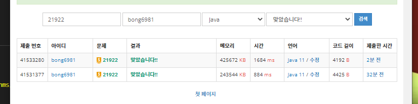 풀이1이 더 빠르다 (파이썬은 풀이 1 시간초과)
