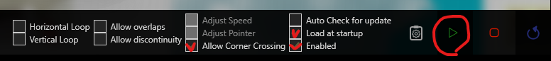 그 다음에는 하단에 보시면 Allow Corner Crossing, Load at startup, Enabled를 모두 체크해줍니다. 그후 초록색 재생 버튼을 클릭~!