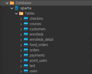 데이터베이스는 아래의 이미지처럼 테이블들로 구성되어 있습니다.