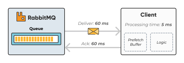 예를 들어 Prefetch Count가 1이라면 하나의 메시지가 처리되기 전에는 새로운 메시지를 받지 않습니다.